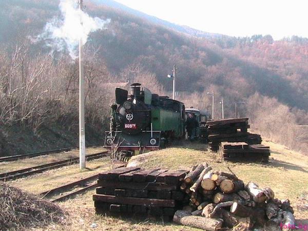 The trial run of BDZ narrow gauge steam lok 609. The lok at station Dolene just before attaching to the cars. Photo by Todor Cholakov(bdz46@abv.bg) |