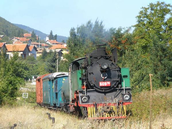 The trial run of BDZ narrow gauge steam lok 609. The train is just left station Varvara. Photo by Todor Cholakov(bdz46@abv.bg) |