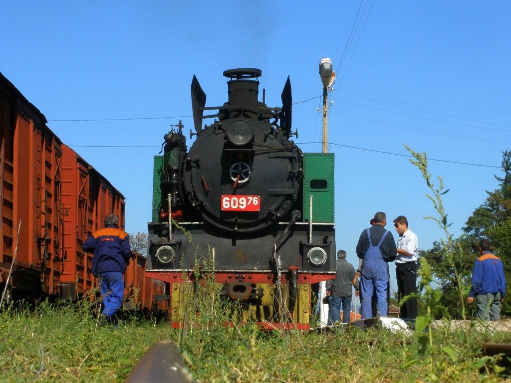 The attraction run of BDZ narrow gauge steam locomotive with number 609.76 on 22th September 2009 year with the participation of foreign tourists - germans and frencmen.On this photo , the steam locomotive with an attraction train standing on railway station Varvara.