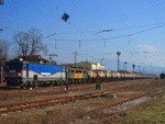 A private electric locomotive of class 40 with number 40 0656-5 of private operator BZK (BRC - Bulgarian Railway Company) crossing through railway stop Pavel Bania with freight train.