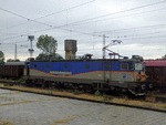 A private electric locomotive with number 91 53 0 40 0605-8 , owned by private operator BRC ("Bulgarian Railway Company") standing at railway station Iliyantsi before pulling a freight train.