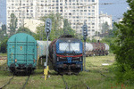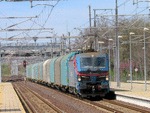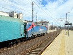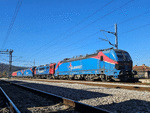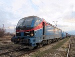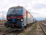 A private electric locomotive SIEMENS Smartron with number 91 52 10 80 025 - 5 , owned by private operator "Bulmarket" cross through railway station Dimitrovgtad central with freight train. A video about crossing through the railway station, you can see here: