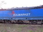 A private electric locomotive SIEMENS Smartron with number 91 52 10 80 025 - 5, owned by private operator "Bulmarket" at railway station Ruse Razpredelitelna with freight train.