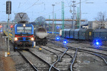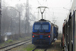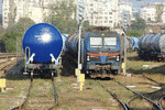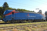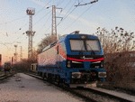 A private electric locomotive SIEMENS Smartron with number 91 52 10 80 027 - 1 , owned by private operator "Bulmarket" standing near central railway station Plovdiv , before pulling a freight train.