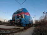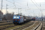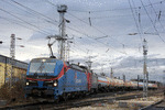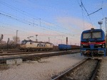 A private electric locomotive SIEMENS Smartron with number 91 52 10 80 026 - 3 , owned by private operator "Bulmarket" at cental railway station Sofia with freight train.