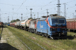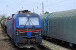 A private electric locomotive SIEMENS Smartron with number 91 52 10 80 026 - 3, owned by private operator "Bulmarket" at railway station Ruse Razpredelitelna with freight train.