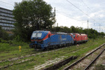 A private electric locomotive SIEMENS Smartron with number 91 52 10 80 031 - 3 , owned by private operator "Bulmarket" at railway station Iliyantsi, after pulling a freight train.