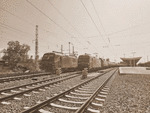 A 3 private electric locomotives , all owned by private operator "Bulmarket" at railway station Iliantsi after pulling a freight trains.