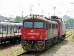A private electric locomotive with number 91 52 00 87 025 - 0 , owned by private operator "Bulmarket" in depot Sofia before pulling a freight train.