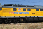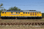 A private diesel locomotive with number 92 52 00 07 151 - 0, owned by private operator Euro Engineering at railway station Vakarel with work train.