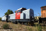 A private diesel shunter with number 80 0239 - 6 owned by private operator "Express Service" standing in base near railway station Obrazcov Chiflik.