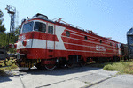 A private eletric locomotive with number 91 52 00 46 404 - 7, owned by private operator "Express Service", standing near railway station Dimitrovgrad central after pulling a freight train.