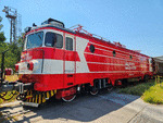 A private eletric locomotive with number 91 52 00 46 728 - 9, owned by private operator "Express Service", standing at railway station Iliyantsi after pulling a freight train.