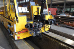 A view from cab of private electric locomotive type ES 3000, owned by company "Expess Service" standing in the base near railway station Obrazcov Chiflik.