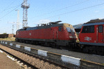 A private electric locomotive of class 86 with number 86 019 , owned by private operator "DB Cargo Bulgaria" standing at central railway station Burgas before pulling a freight train.
