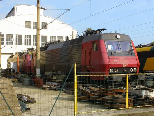 A private electric locomotive with ex-number 3017, owned by LSD-DB Schenker RAIL Bulgaria , standing in Koncar`s depot near railway station Poduiane.