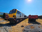 A private electric locomotive with number 92 022, owned by private operator "DB Cargo Bulgaria" in depot Karlovo waiting for a repair.