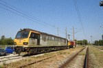 A private elctric locomotive with number 91 52 16 88 030 - 1 , owned by private operator "DB Cargo Bulgaria" standing at railway station Obrazcov Chiflik after pullig a freight train.
