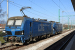 A private electric locomotive SIEMENS Smartron with number 91 52 10 80 064 - 4 , owned by private operator "LTE" at railway station Tulovo before pulling a freight train.