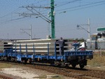 A private platform cars type "Rgs", owned by private railway operator "PIMK Rail" at railway station Todor Kableshkov in composition of freight train.