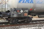 A 2 private freight tank cars , owned by private operator "PIMK Rail" at railway station Pazardjik in composition of freight train.