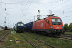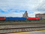 A private electric locomotive SIEMENS Smartron with number 91 52 10 80 004 - 0 , owned by private operator "PIMK Rail" cross through railway station Pazardjik with freight train.A video about crossing the train through the railway station, you can see here: