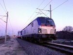 A private electric locomotive SIEMENS Vectron with number 91 52 10 81 972 - 7 , owned by private operator "PIMK Rail" at railway station Todor Kableshkov after pulling a freight train.