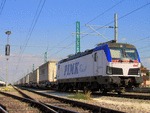 A private electric locomotive SIEMENS Vectron with number 91 52 10 81 972 - 7 , owned by private operator "PIMK Rail" standing at railway station Todor Kableshkov before pulling a freight train.
