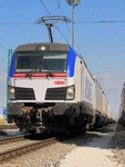 A private electric locomotive SIEMENS Smartron with number 91 52 10 81 972 - 7 , owned by private operator "PIMK Rail" at railway station Todor Kableshkov before pulling a freight train.