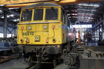 A private electric locomotive with number 86 610, owned by private operator "Rail Net Cargo" standing in base near railway station Obrazcov Chiflik.