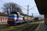 A private diesel shunter with number 98 52 00 55 062 - 4 , owned by private operator TPPBD ("Termo Power Plant Bobov Dol") at railway station Ilyantsi with freight train.