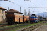 A private diesel locomotive with number 92 52 00 55 062 - 4 , owned by company TPPBD ("Termo Power Plant Bobov Dol") standing at railway station Pernik Razpredelitelna - the field marshalling yard of railway staton Pernik.