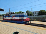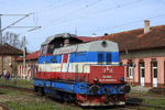 A private diesel locomotive of class 55-00 with number 98 52 00 55037 - 6 , owned by private operator TPPBD ("Termo Power Plant Bobov Dol") stading at railway station Nova Nadejda with freight train.