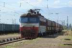 A private electric locomotive with number 91 52 00 43 556 - 7 , owned by private operator TPPBD ("Termo Power Plant Bobov Dol") at railway station Voluyak with freight train.