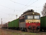 A private electric locomotive with number 91 52 00 44 083 - 1 , owned by private operator TPPBD ("Termo Power Plant Bobov Dol") at railway station Filipovo with freight train.