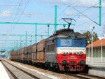 A private electric locomotive of class 44-00 with number 91 52 00 44083-1 of company TPPBD ("Termo Power Plant Bobov Dol") crossing through railway station Pazardjik with freight train.