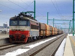 A private electric locomotive with number 91 52 00 44 083 - 1 , owned by private operator TPPBD ("Termo Power Plant Bobov Dol") at railway station Pazardjik with freight train.