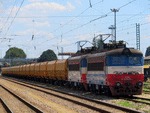 A private electric locomotive with number 91 52 00 44 083 - 1 , owned by private operator TPPBD ("Termo Power Plant Bobov Dol") at railway station Septemvri with freight train.
