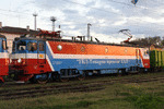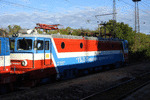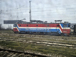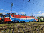 A private electric locomotive with number 91 52 70 46 016 - 9, owned by private operator TPPBD ("Termo Power Plant Bobov Dol") at railway station Filipovo with freight train.