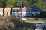 A 2 private electric locomotives of class 46, all owned by private operator TPPBD ("Termo Power Plant Bobov Dol") at railway station Filipovo with freight train.