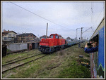 A private diesel shunter with number 98 52 00 51 633 - 6, owned by company "TTL" at railway station Elin Pelin, before shuntng with freight cars.