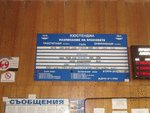 A view from railway station Kiustendil.You can see a traffic lights and timetable in the waiting - room.