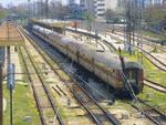A view from central railway station Plovdiv. A fast train from Sofia to Varna has enter in the station.