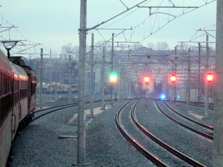 A view from railway station Simeonovgrad , situated on the line Dragoman - Sofia - Plovdiv - Dimitrovgrad - Svilengrad. This station is connecting with railway track towards Nova Zagora , but the passenger trains are stopped and now there are only freight trains.On this photo , you can see an operate tracking device.
