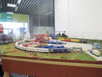 A train models in the waiting room of central railway station Sofia.