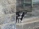 A little puppies at railway station Strelca.