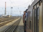 For a period of one month (from 3rd March to 3rd April) BDZ (Bulgarian State Railways) arrange a test drive with a steam locomotive from Sofia to nearby spa resort Bankia.There is an only one train , pulled by the steam locomotive with number 01.23 and 6 passenger cars as a following - retro style passenger car of class 10 (type "S") , one first class passenger car of class 40 (type "Ame") and 4 second class passenger cars of class 45 (type "Byu").Even 6 coaches are been insufficient to accommodate those wishing to travel passengers.According to official data in one direction , train has carrying over 800 people.On this photo , you can see the train between Sofia and Voliuak.