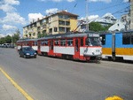 Sofia T4D-C 1171 and trailer 183 on bul. Konstantin Velichkov. August 2017. The first ex-Halle set in new livery like their normal gauge counterparts ex-Leipzig. Photo by M.Koblischka |
