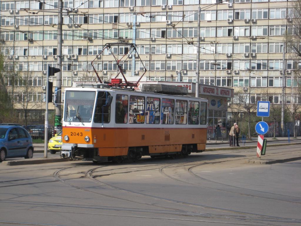 Sofia T6A2SF 2043 on bul. Stamboliski, just before crossing bul. Konstantin Velichkov, serving line 10. April 2010.