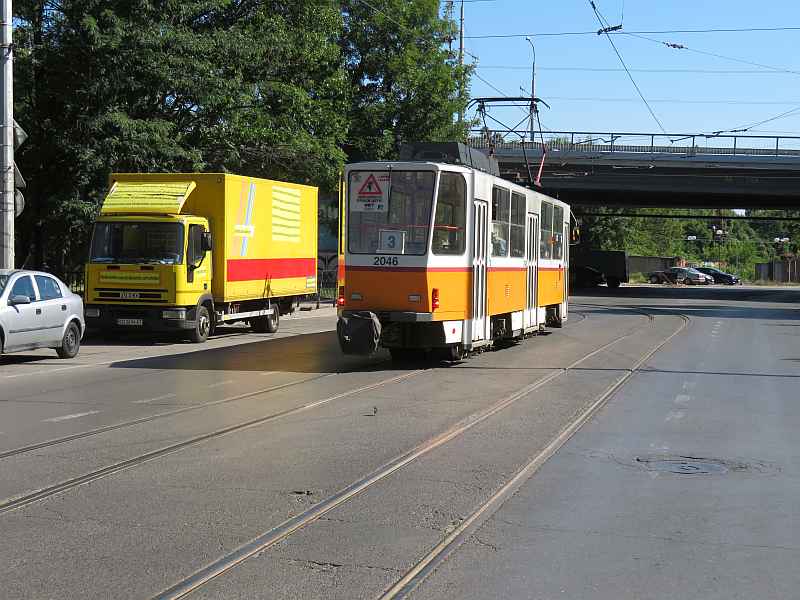 Sofia T6A2SF 2046 seen from Sofia Mall at the crossing ul.Opalchenska/bul.A.Stamboliski. August 2016.